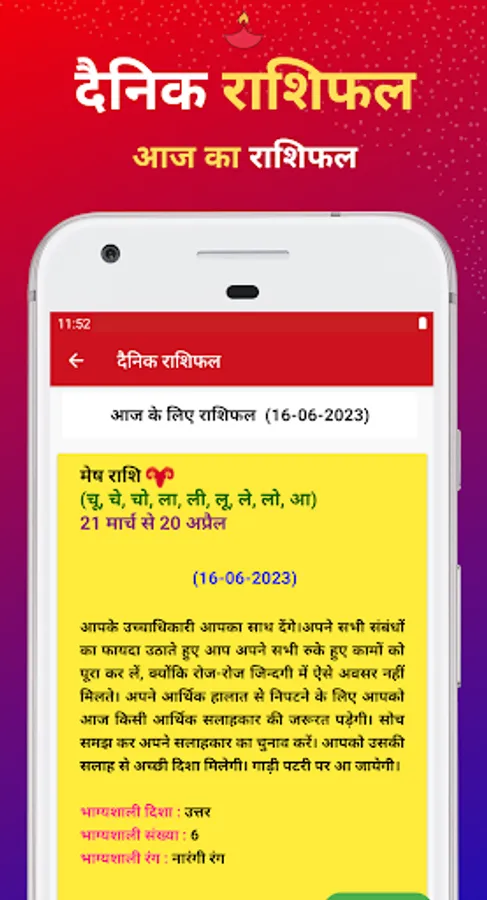 ✔ In the Muhurta section, the user can find the Muhurta for essential auspicious functions like marriage, engagement, business telling, vehicle purchase, foundation stone laying, house entry ceremony etc.