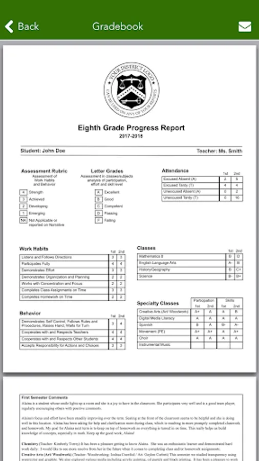 Your student's data will only appear if your child's teacher is using Report Card Maker. Ask your child's teacher if they are using RCM.