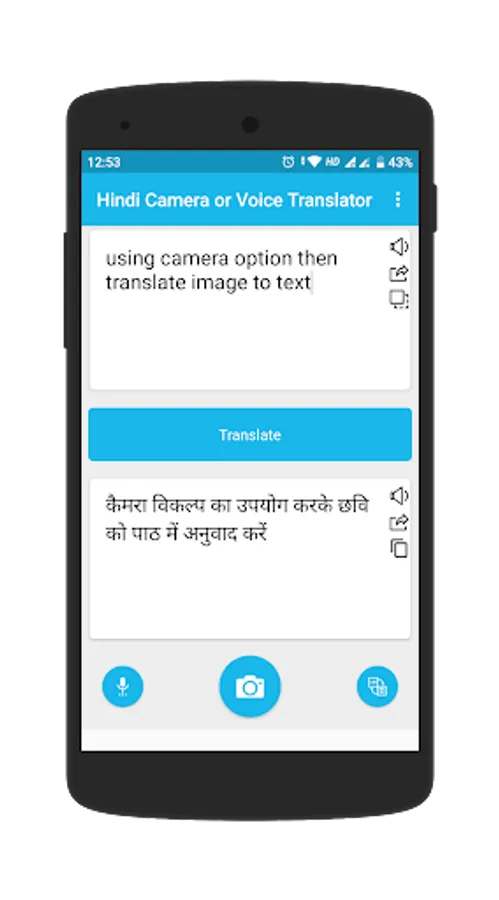 -> Hindi Camera & Voice Translator is the only application where you can convert from one language to another by simultaneous camera, voice and text.