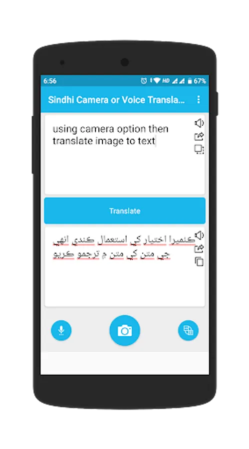 -> Sindhi Camera & Voice Translator application can also be converted from one language to another by gallery, camera and your voice.