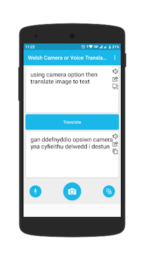 -> In Welsh Camera & Voice Translator application you can convert directly by typing.