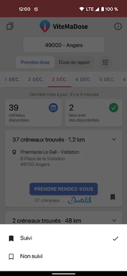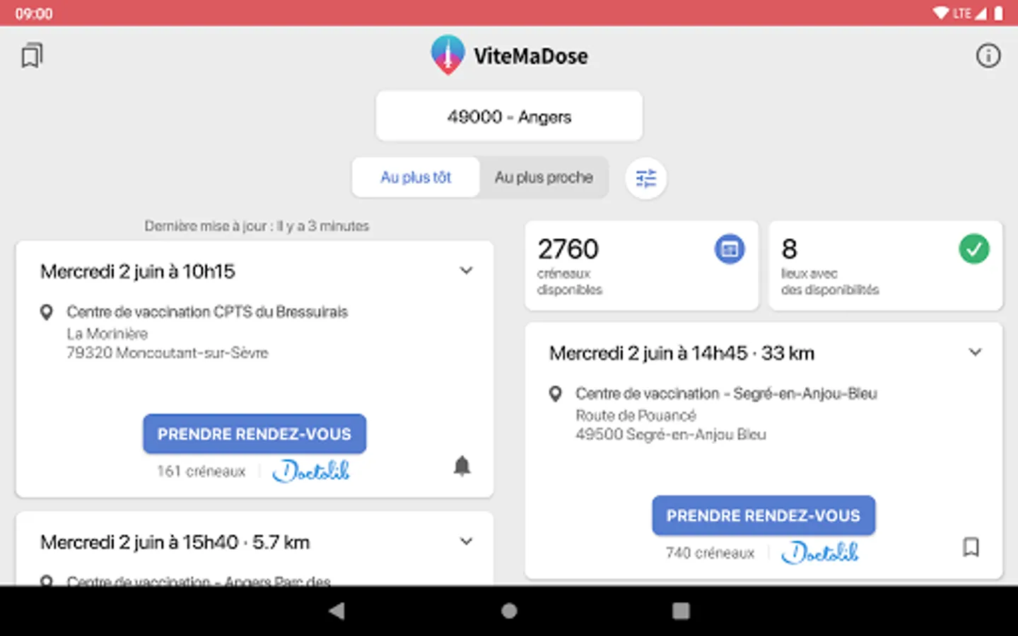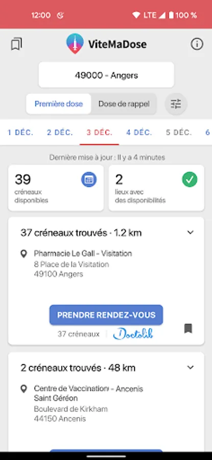 Quickly My Dose of Vaccine! is a tool for detecting vaccination appointments. This fast, simple and reliable application makes it possible to find all the vaccination appointments available on booking platforms such as Doctolib, Maiia, Keldoc or Ordoclic, subject to eligibility.
