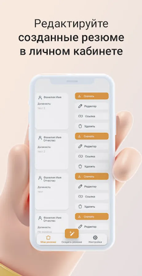 • Convenient management of all created resumes from the user's personal account.