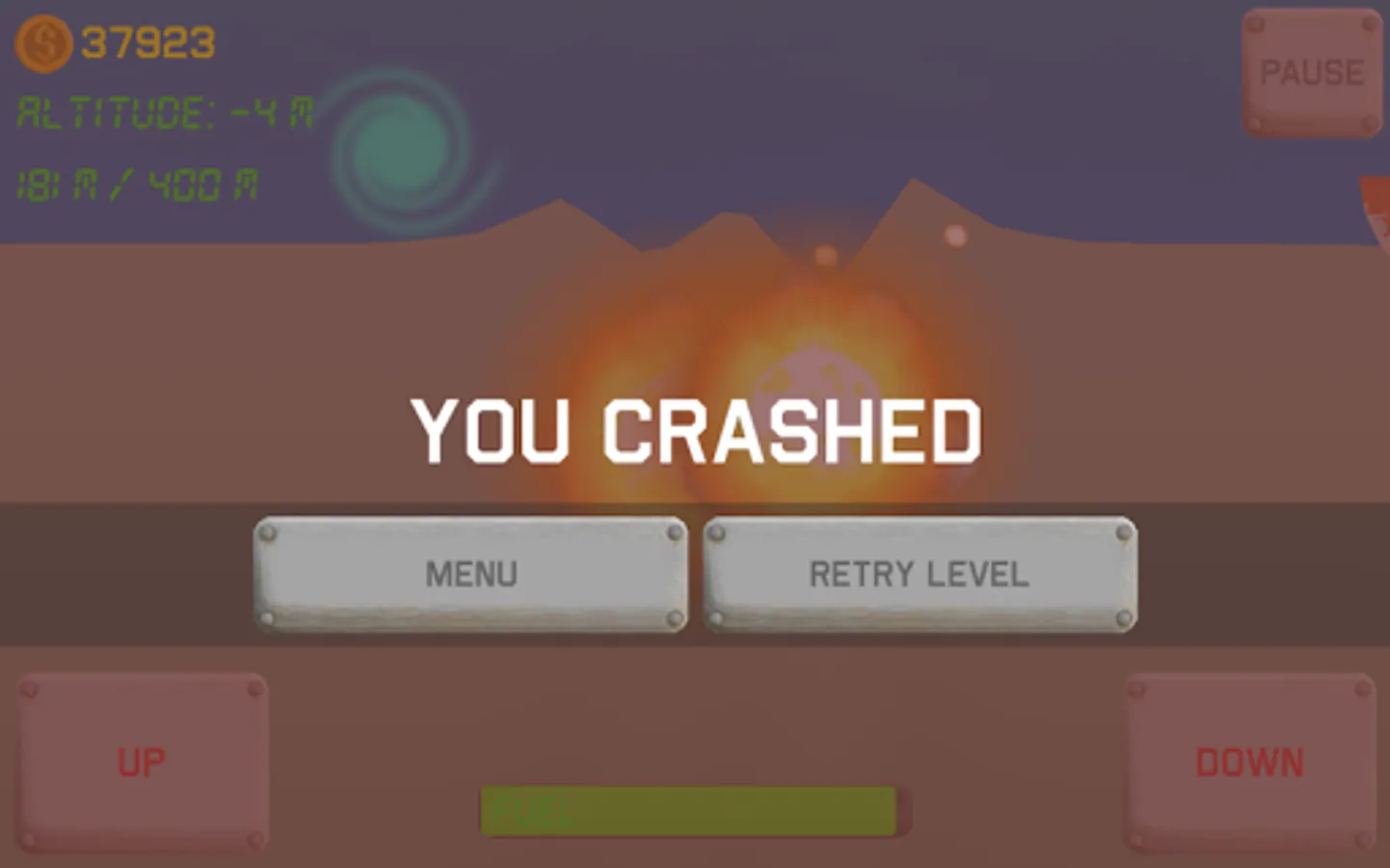 Press the up and down buttons on screen to move up and down. Fly as much as you can, bigger jumps get you more points.