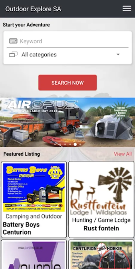Outdoor Explore SA is a FREE directory application with everything you need for your perfect adventure. Whether you need to find a fitment center, camping specialist or something else just use Outdoor Explore SA. Let your adventure start today!