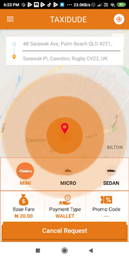 - Pick the type of vehicle you want liek sedan, micro, mini & tap RIDE NOW