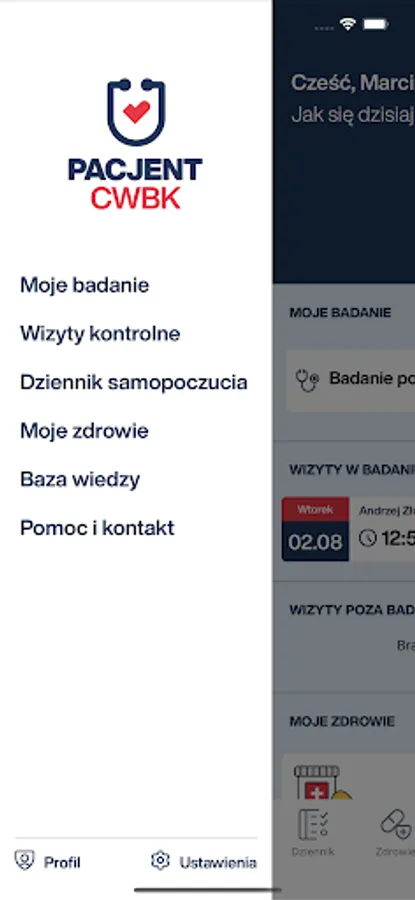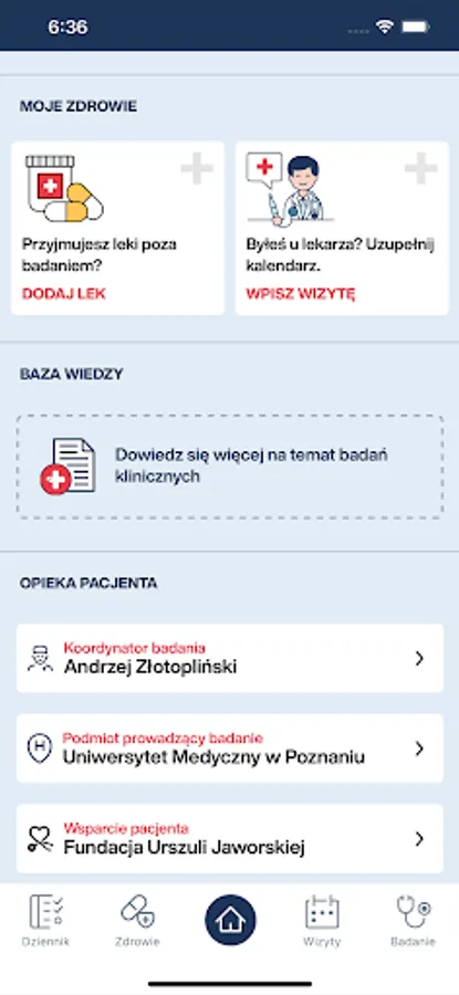 If necessary, it is possible to quickly contact the CWBK coordinator, researcher or the Urszula Jaworska Foundation - supporting clinical trial participants from the patient side. The application also includes Puch notifications reminding you of important information throughout the entire process