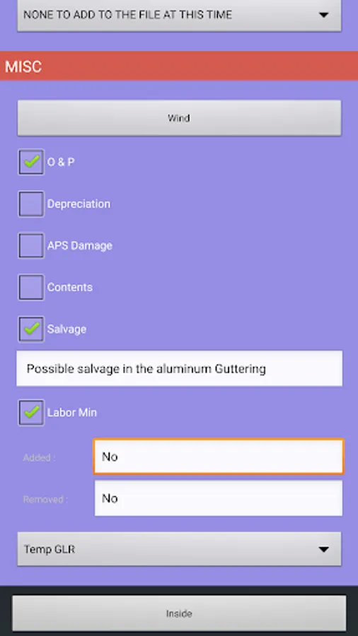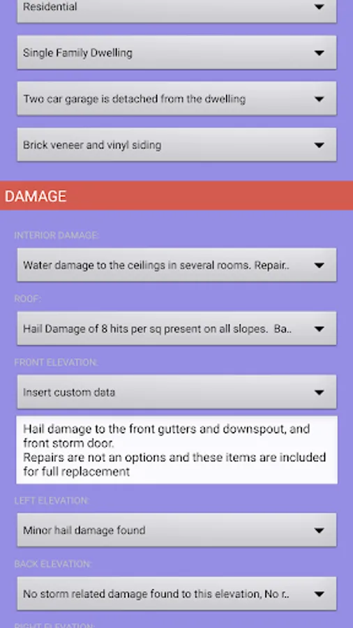 - In Settings set the default options for each section in the app to reduce time in areas with similar style properties, types of damage, dates of loss and other options.