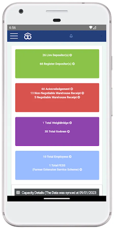 The Mobile App of WMS will provide the required data e.g. Total Capacity, Occupancy, Vacant Space, Total Income (Storage/PCS/MF/Other Income etc.), Total Expenses drill down to warehouse level to top executives of CWC on hand while on move or in meetings to take business decisions.