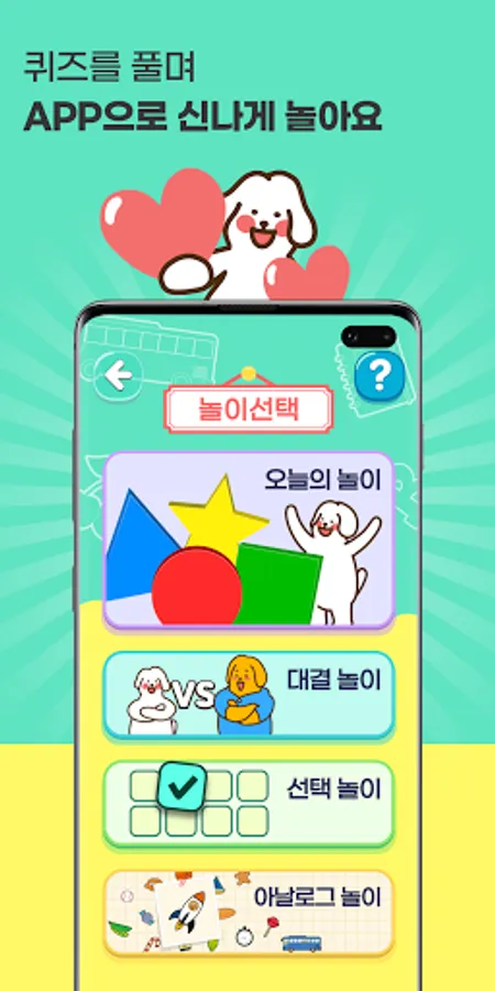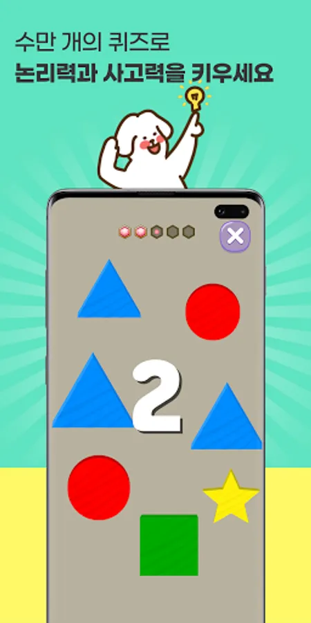 FINNO Quiz consists of rides + App. Take tens of thousands of quizzes by tagging the four shapes on the ride. Play with a quiz that stimulates your brain while moving your body in the play space, and develop your logic and thinking skills with the SMART play learning'Pino Quiz'!