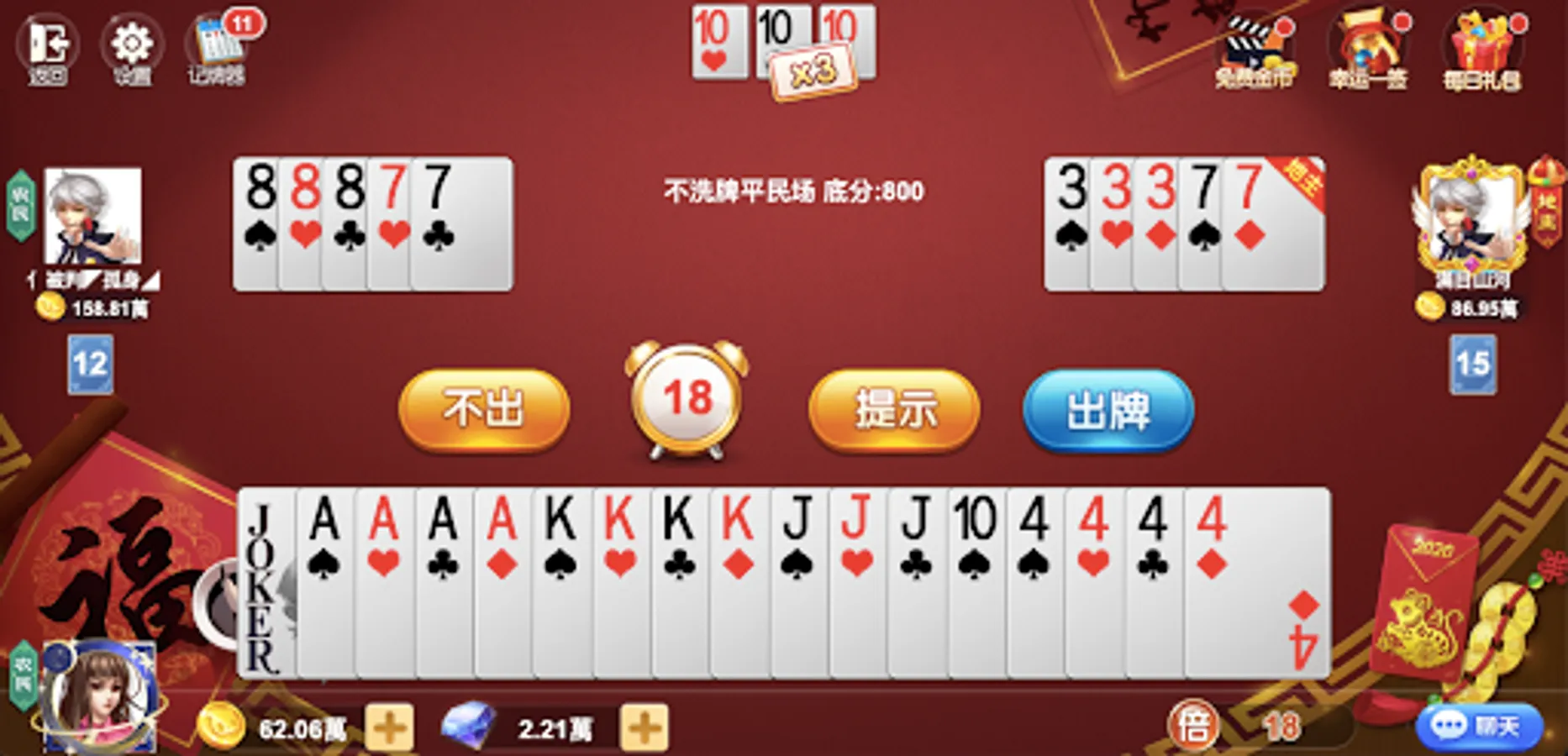 The classic three-person battle against the landlord, the bomb field, the pass field, and the leap field, enjoy the leisure and joy!