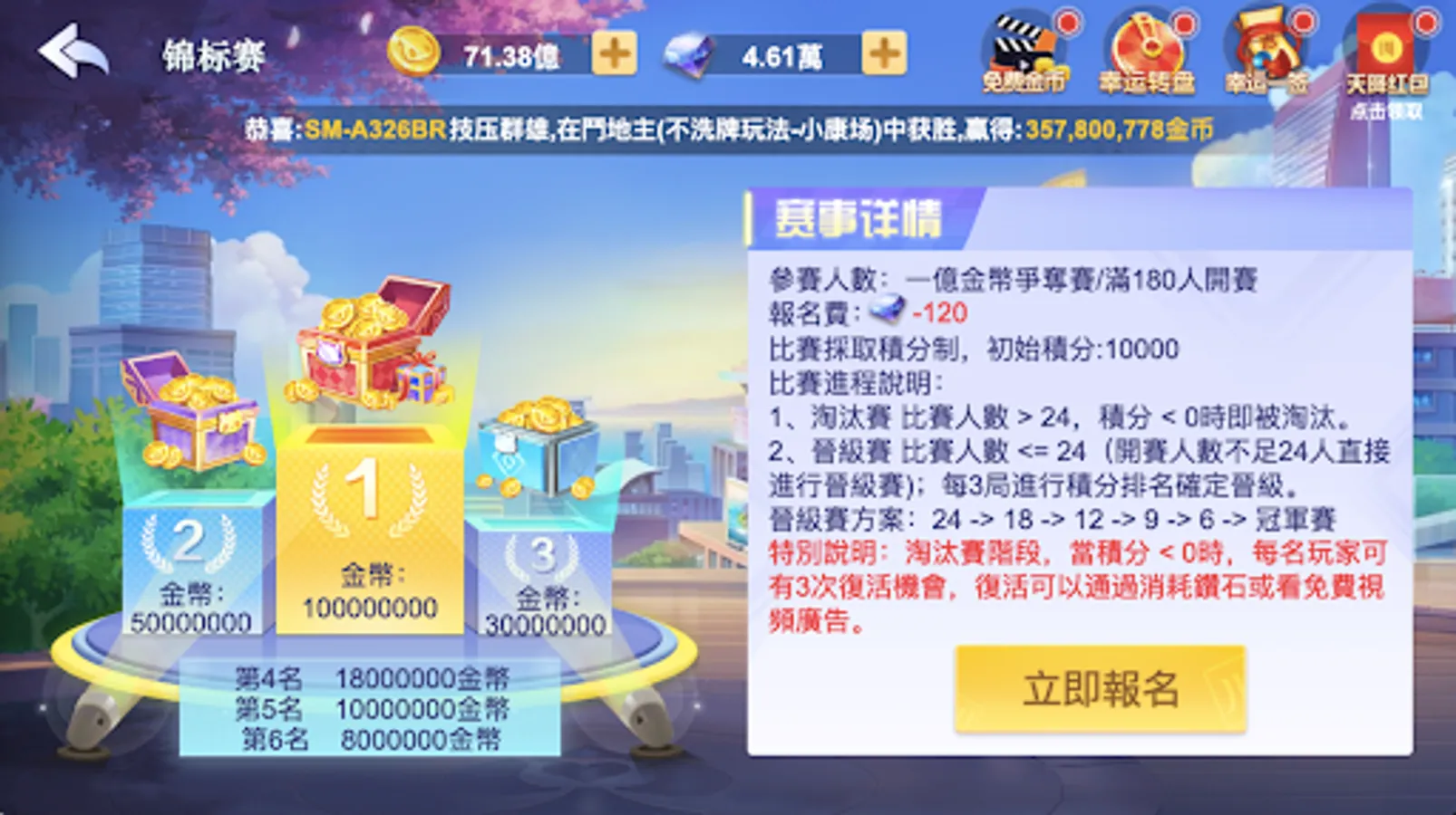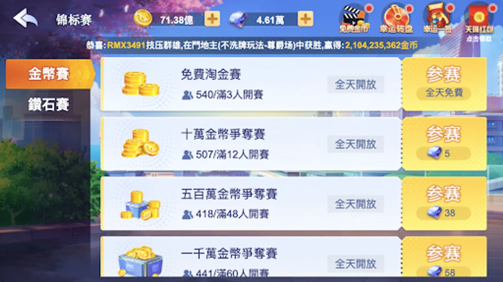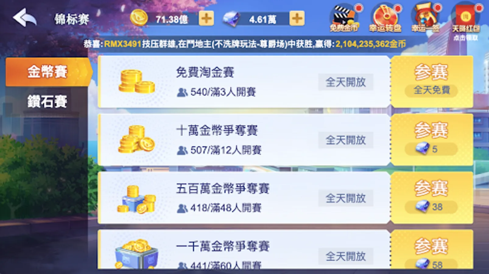 The game will start immediately when the crowd is full throughout the day, gold coin competition, diamond competition, hundreds of millions of rewards.
