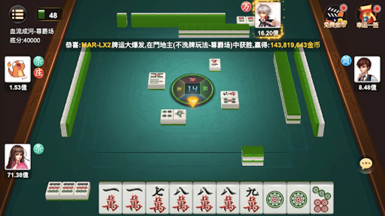 Real person duel, blood flow into a river, blood stand to the end, two-person mahjong, Guangdong mahjong, Hong Kong mahjong, Taiwan mahjong, different playing methods and different experiences.