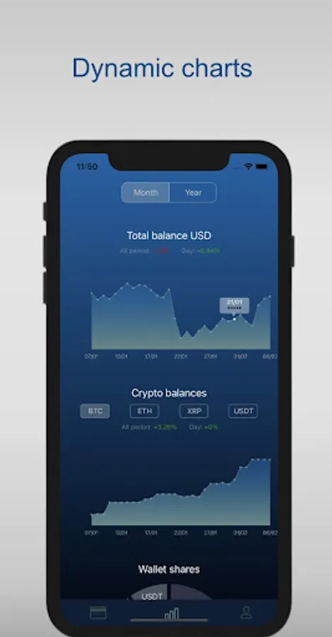 All fiat equivalents calculated dynamically according to current exchange rates on the crypto market. You will always know how much traditional money you have at the moment.