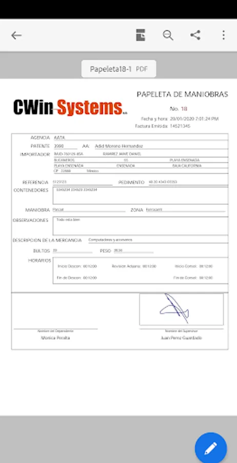 Management of solutions specialized in logistic maneuvers, where the Supervisor can capture the ballots of maneuvers and finalize it by signing, you can generate ticket printing, as well as share in PDF to the importer.