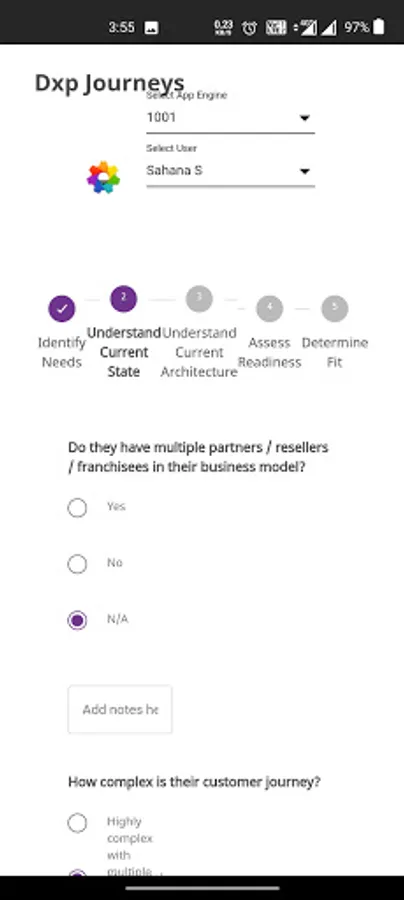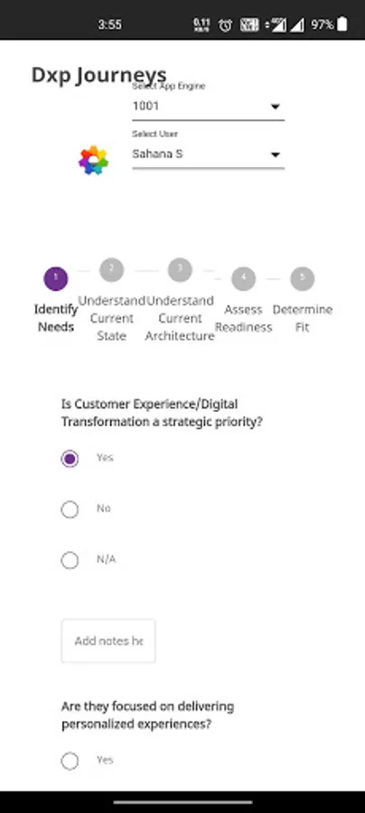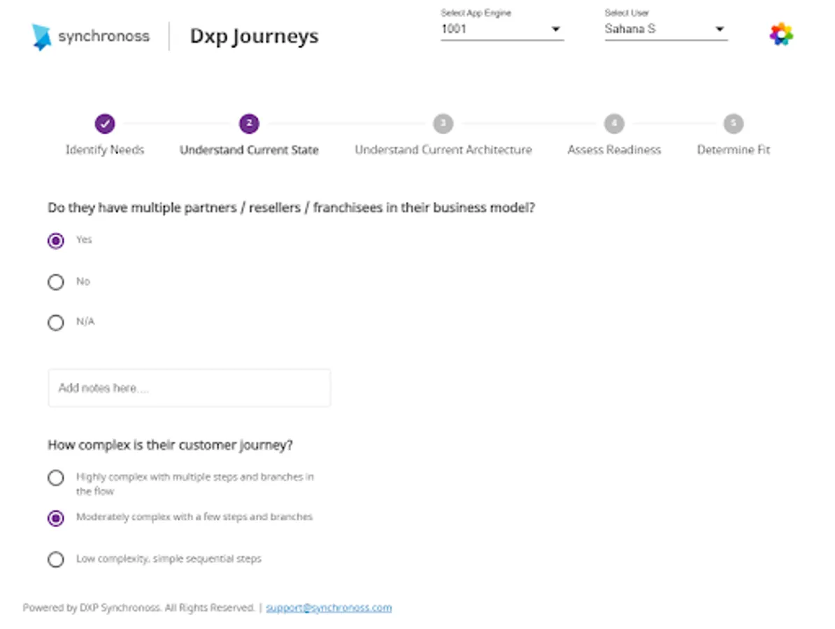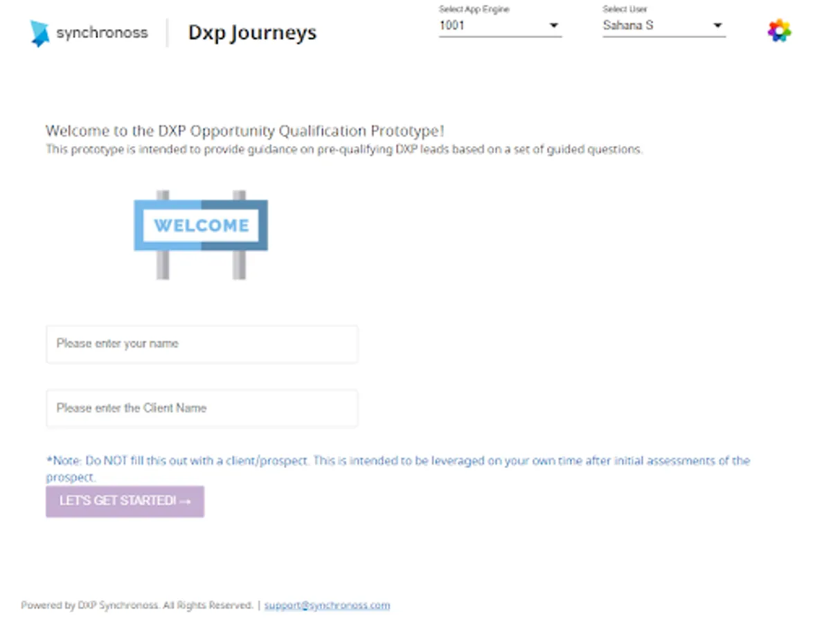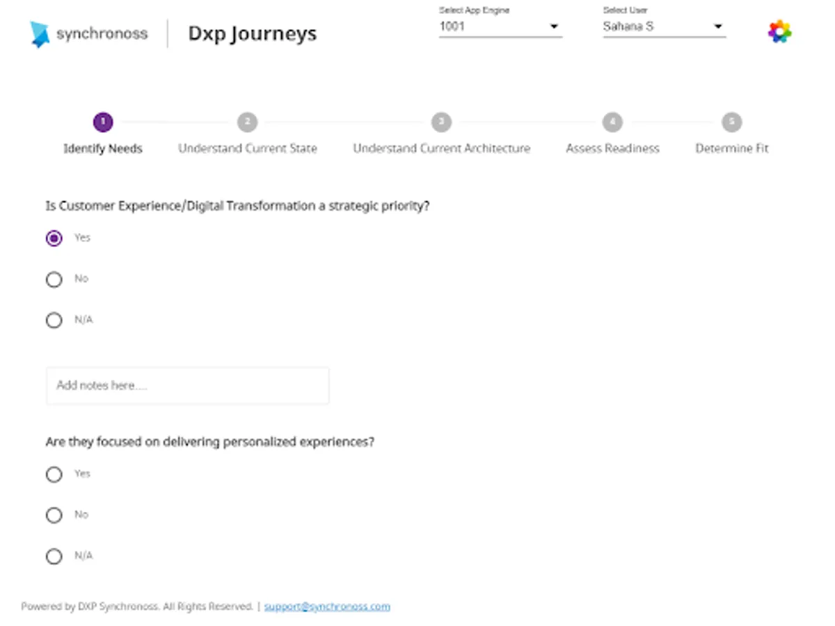 DXP UI app has set of guided questions and multiple options to choose through which it does a survey and displays the end result