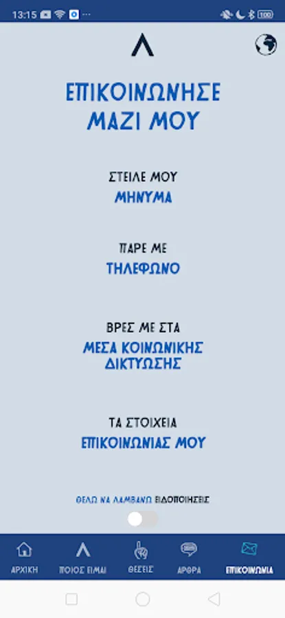 Μπορείς να χρησιμοποιήσεις την πλατφόρμα για να ενημερωθείς για τις απόψεις μου αλλά και για να μου μεταφέρεις τις δικές σου! Πέσμου την άποψή σου μέσα από τις ψηφοφορίες, στείλε μου τις Ιδέες σου , επικοινώνησε μαζί μου!