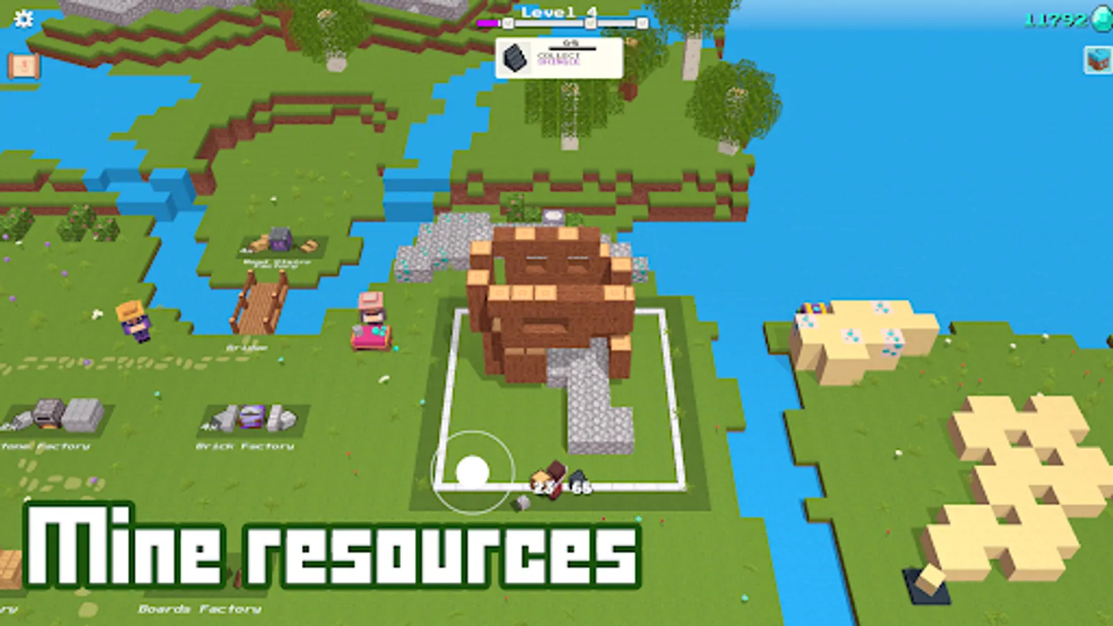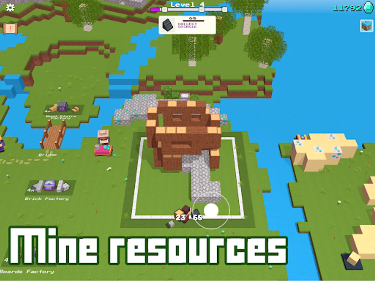 🟩 Mine, all mine: Mine, log, farm and quarry a wide range of block-shaped resources including wood, stone, clay and wool to get the basic blocks on which to build your crafting empire 🏰.