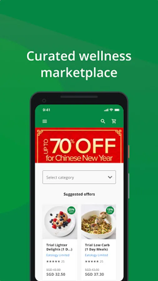 • Our wellness e-marketplace offers discounts and deals that suits the your preference like gym equipment/memberships, health supplements, vacations, or products for your children, our wellness e-marketplace is bound to have something for you.