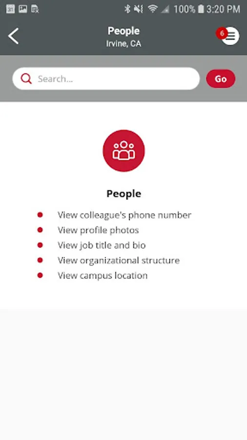 • Universal Search lets you find everything from people, to directions to campus locations, to campus information, quickly and conveniently