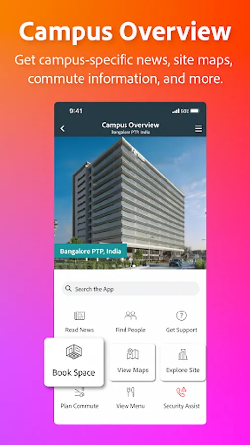 Adobe Life is a smart campus mobile app that helps you stay productive, connected, and well throughout the day – whether at the Adobe office or at home.