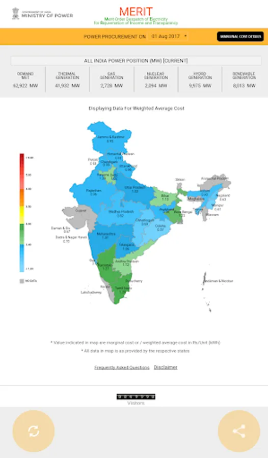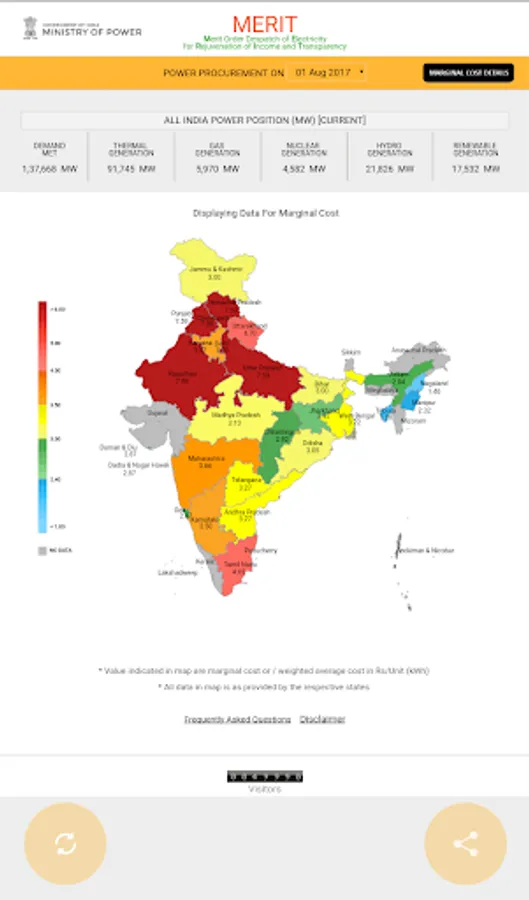 The MERIT App/Web portal displays extensive array of information regarding the merit order of Electricity procured by State(s) such as daily state-wise marginal variable costs of all generators, daily source-wise power purchases of respective states/UTs with source-wise fixed and variable costs, energy volumes and purchase prices. The web-portal also give information regarding reasons for deviation from merit order such as must run conditions, transmission constraints etc. The Web Portal can also be accessed at http://meritindia.in/.
