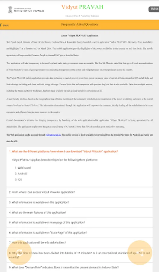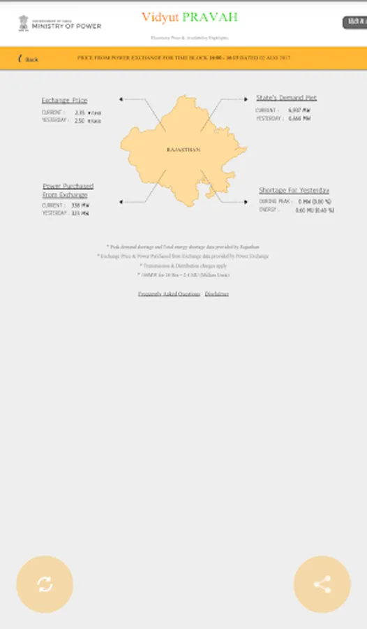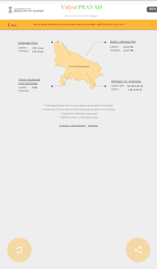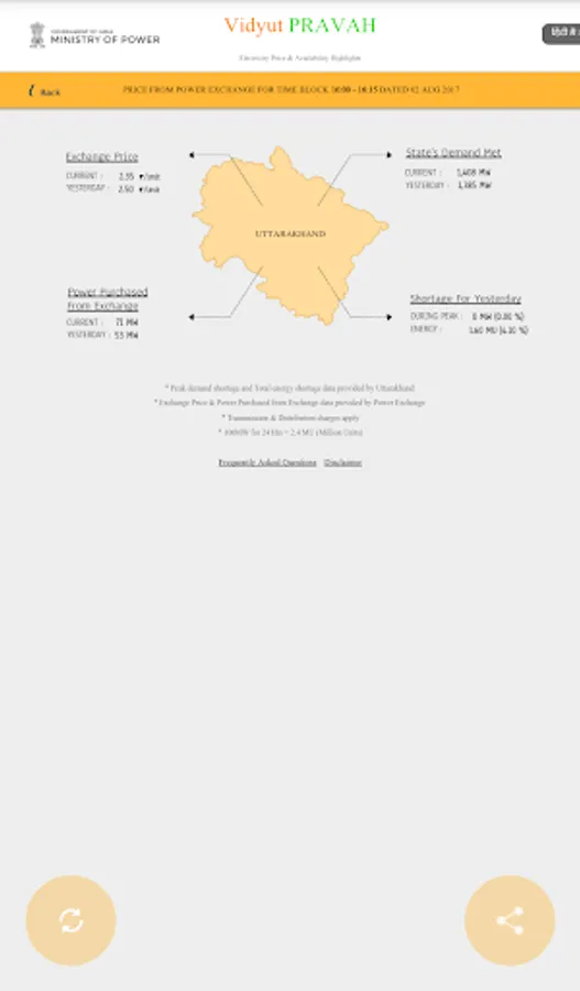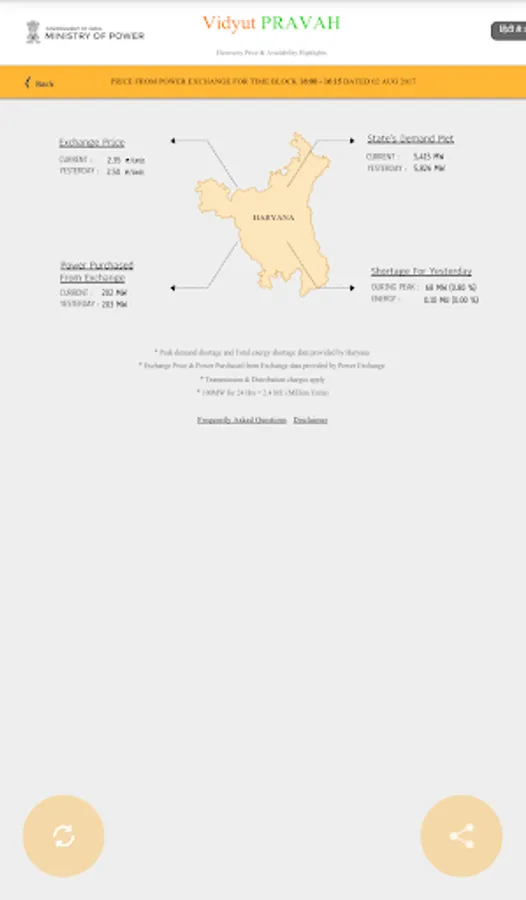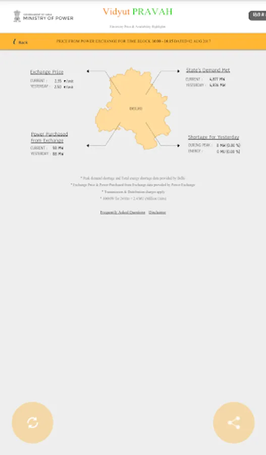 The Vidyut PRAVAH mobile application provides data pertaining to market price of power from power exchange, value of current all India demand in GW and all India and State shortage including peak hour and total energy shortage. The real time data and comparison with previous day/year data is also available. Data from multiple sources, including the States and Power Exchanges, has been made available through a single portal for convenience of all.