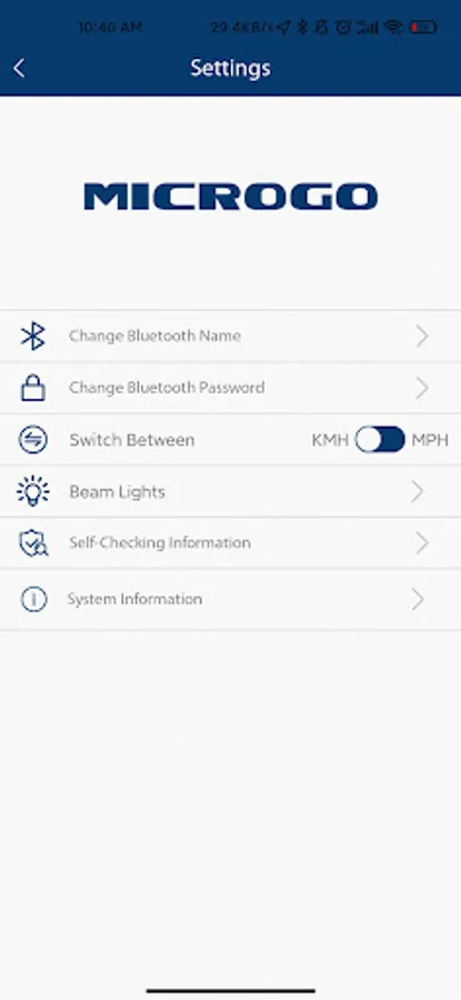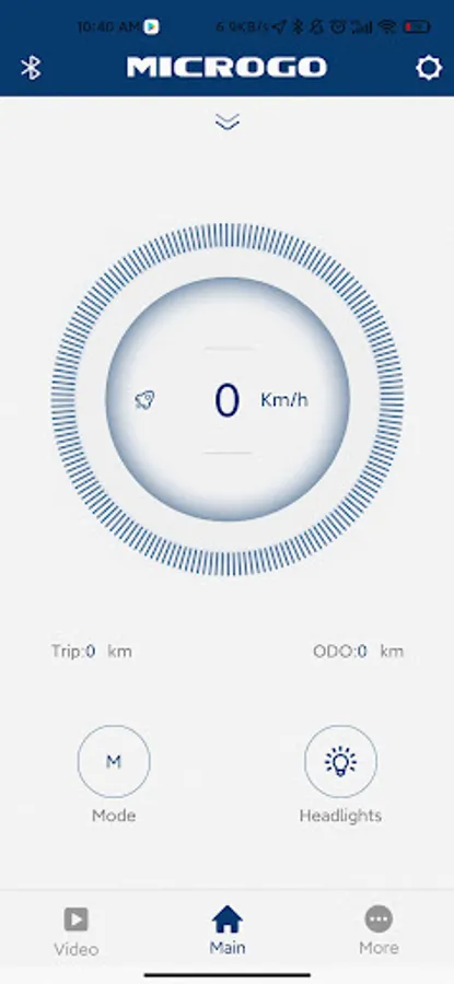 On the "Main" page,you can see vehicle speed, trip distance and total distance .On the page,you can also select vehicle mode and control the light.