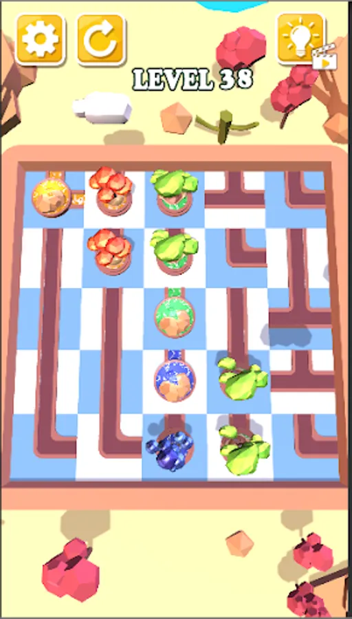 By changing the direction of water on the ground, you connect water and trees. A level is completed when all the trees are watered. Pay attention to the color of the trees and the color of the water.