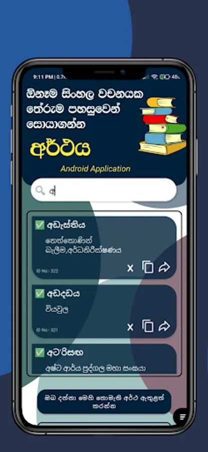 මෙම App එක භාවිතා කර ඔබට සිංහල වචනවල තේරුම පහසුවෙන් සොයා ගැනීමට හැක