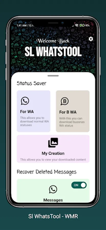 It is easy to recover deleted messages, text messages from WhatsApp using this Sl WhatsTool - WMR app. All you have to do is open WMR Recover Deleted Messages and then enable notification for your WhatsApp and allow WA Recover Deleted Messages – WA Message Recovery app to read the notifications and save them and show you when you open the app.
