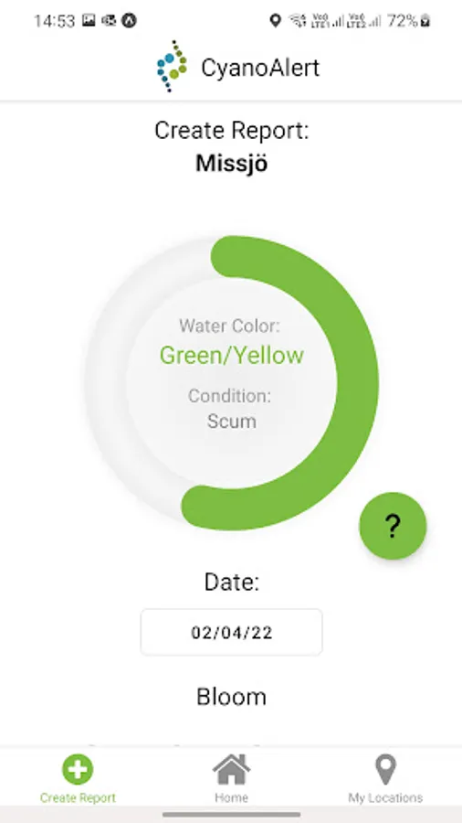 The app provides a graphical user interface where the user can assess changes in water quality, including potential cyanobacterial blooms, and allows for the user to report their own observations.