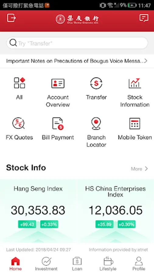 If you are our Internet Banking customer, you may login to enjoy the Mobile Banking services by using the username and password of your Internet Banking Account. If you have not registered our Internet Banking Services, please visit any of our branches for registration.