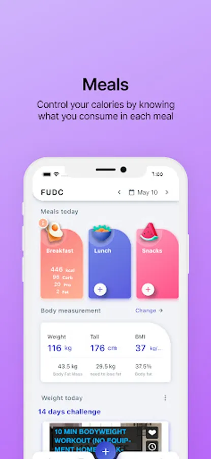 FUDC helps you control the calories needed for your body without any complexity or prior knowledge of the diet or any other diet.