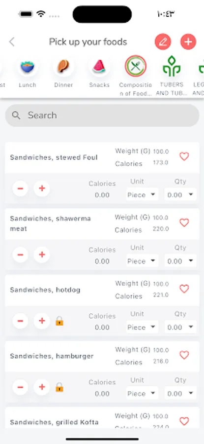- يمكنك أن تضيف أى اكله خاصه بك واستخدامها مع امكانيه اضافه صورة لها وتحديد السعرات الخاصه بها .