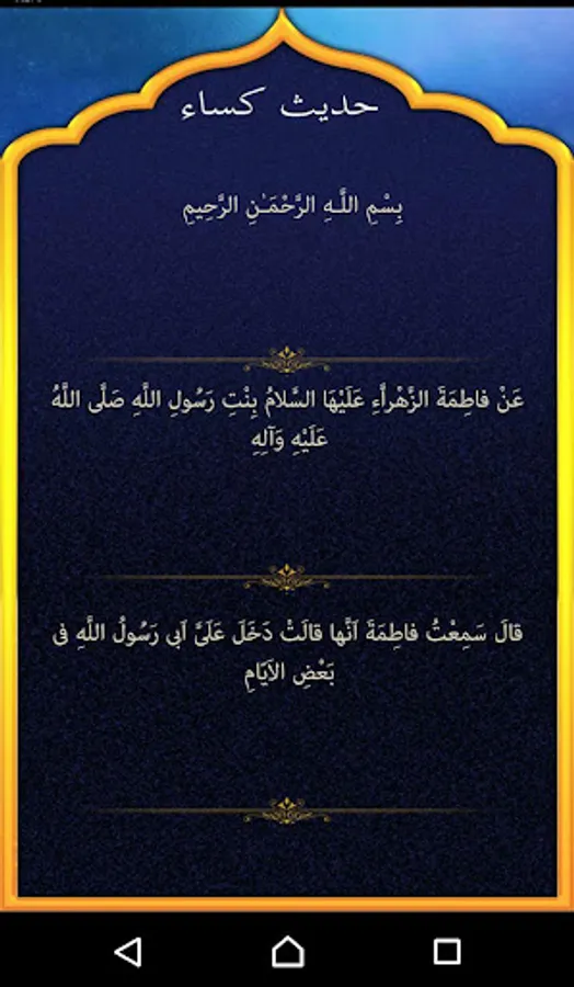 از فاطمه زهرا عليهاالسلام دخت گرامى رسول خدا صلى اللَّه عليه و آله و سلم روايت است كه فرمود: در يكى از روزها پدرم رسول خدا بر من وارد شد و فرمود : سلام بر تو اى فاطمه. گفتم: و سلام بر شما اى پدرجان. فرمود: ضعفى شديد در خود احساس مى كنم.