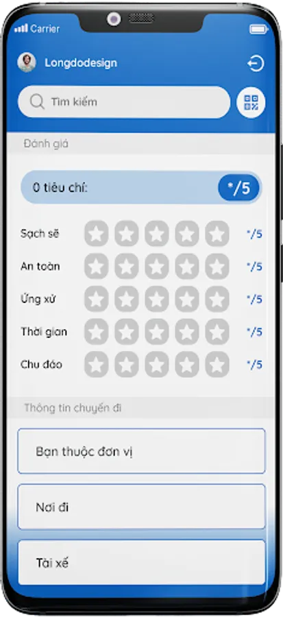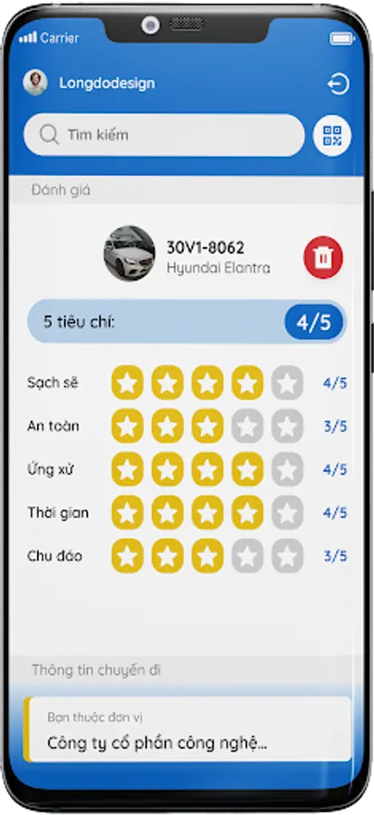 Với ứng dụng này, người dùng có thể đánh giá chất lượng dịch vụ của tài xế bằng cách đánh giá về các tiêu chí: sạch sẽ, an toàn, ứng xử, thời gian, sự chu đáo