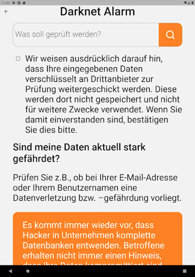 An important pillar of Cyber-Fuchs Privat is our darknet guard, who informs you immediately if criminals can get their hands on your data.