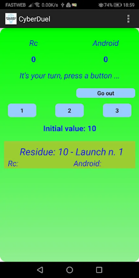 It consists in removing alternatively from an initial number chosen by you during the configuration phase (from 5 to 30) a value of your choice between 1, 2 or 3.