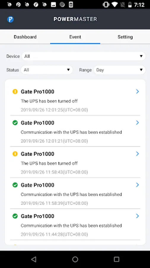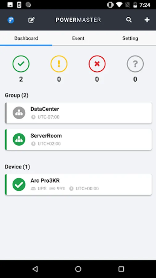 PowerMaster app provides a status overview of your UPS. It enables you to monitor your UPS and supports event notifications to ensure instant event update. PowerMaster app also supports multiple UPS monitoring. You can select a UPS from the UPS List and check its status.