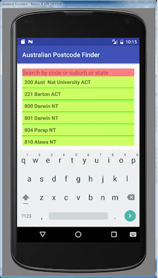 This app will allow you to find a postal code with in Australia. It is quick and fast. You can search by suburb or state name or even with postal code. You can enter partial suburb name or state name or code. Results will be displayed as you type.