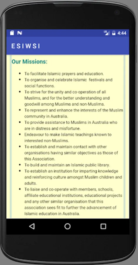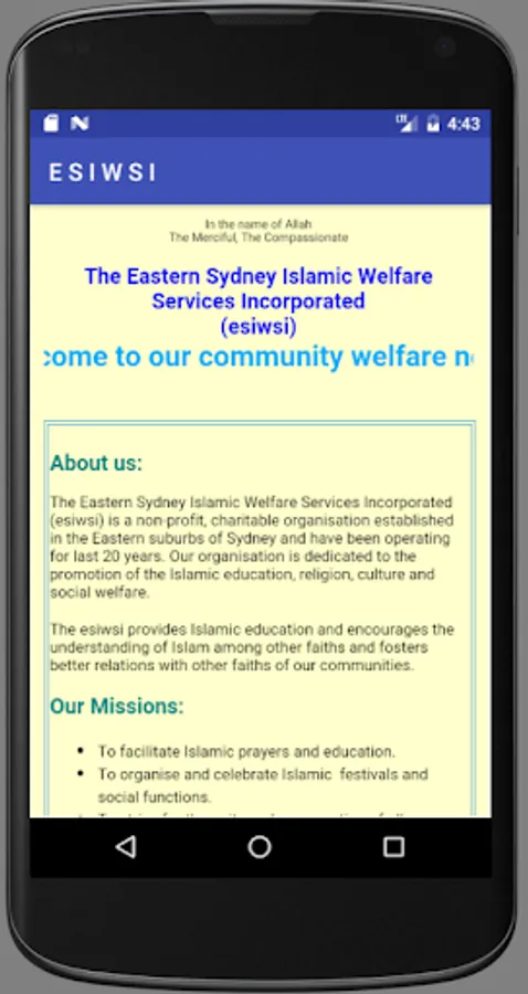 This APP provides information about ESIWSI - The Eastern Sydney Islamic Welfare Services Incorporated.
