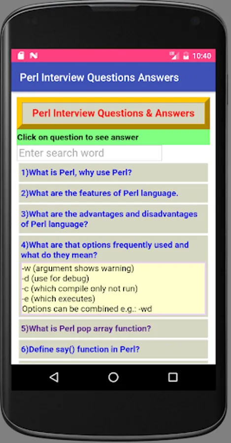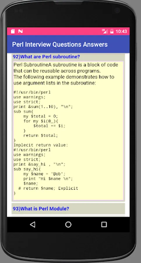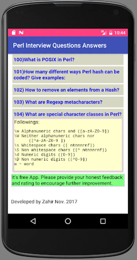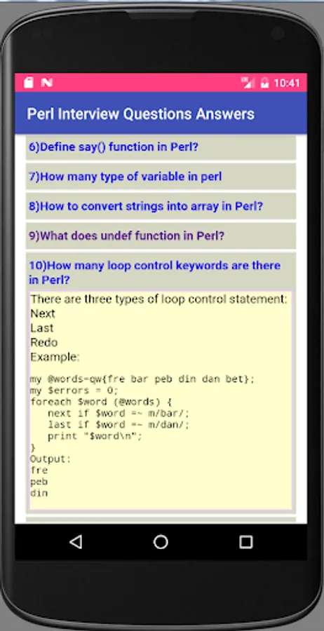 This app offers 104 Perl Interview questions and answers.
