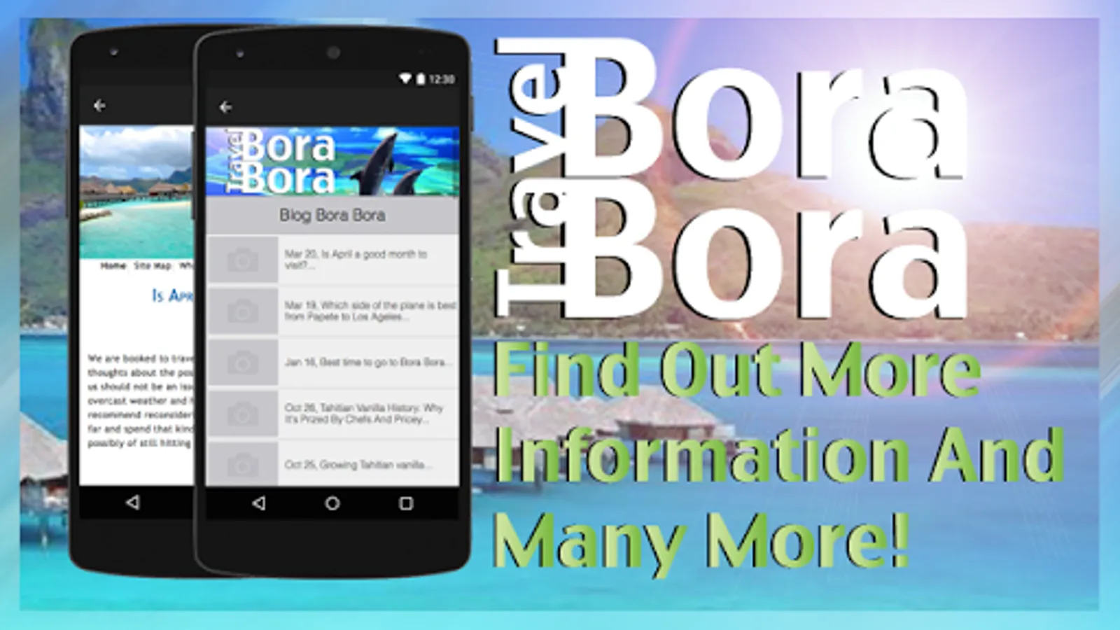 Travel Bora Bora : an app to guide on your visit to Bora Bora, French Polynesia.