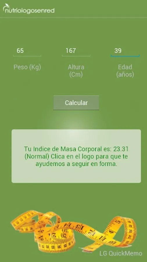 Application for calculating BMI (Body Mass Index) by nutritionists network (nutriologosenred.com)