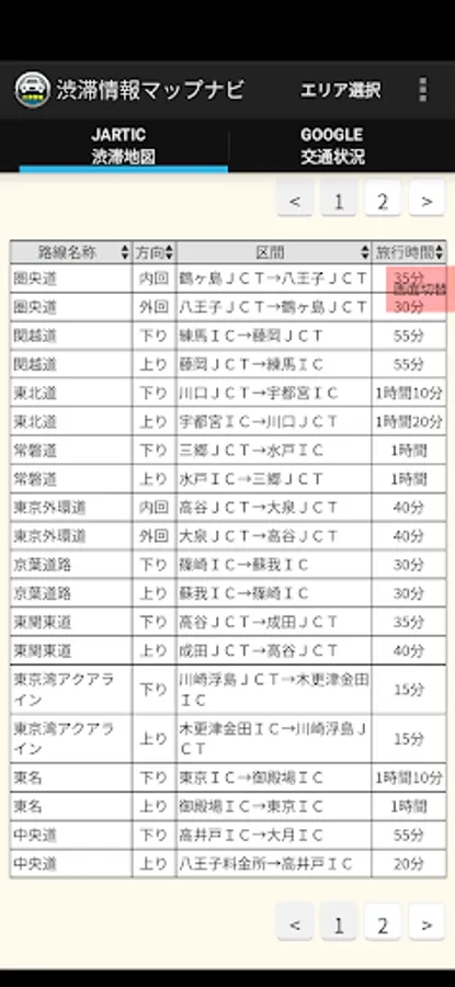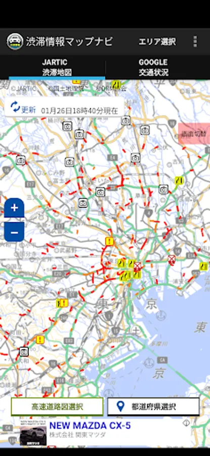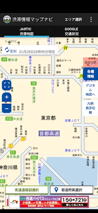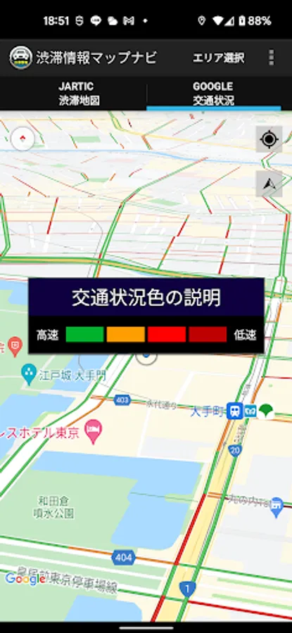 Displays the traffic information provided by the trusted JARTIC Japan Road Traffic Information Center.