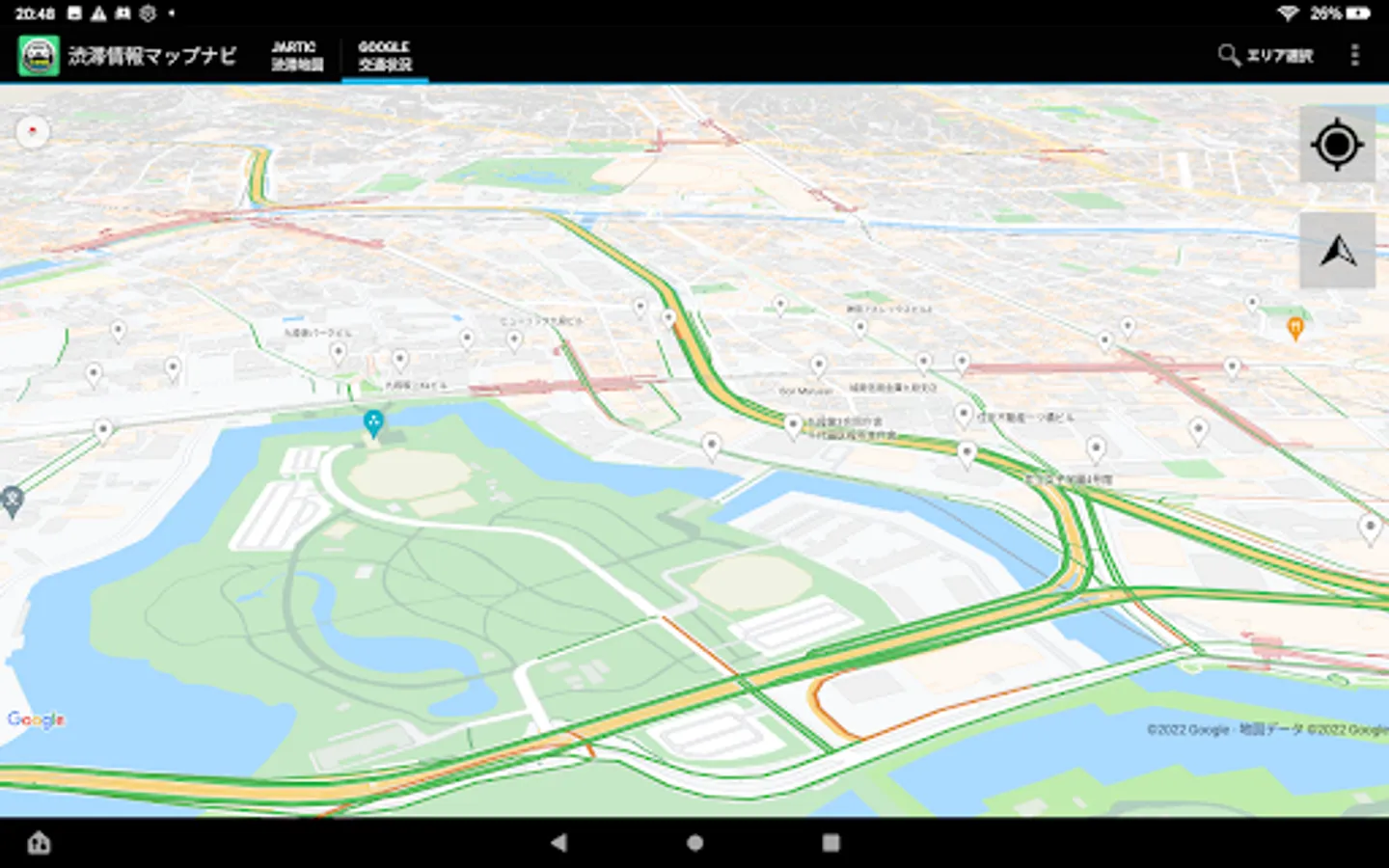It displays Google traffic jam information with a visually sensuous map display, and displays the map in 3D as if it were a car navigation system.