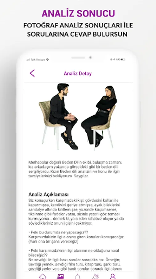 If you wish, you can have body language analysis done by sending your photos to us from within the application.