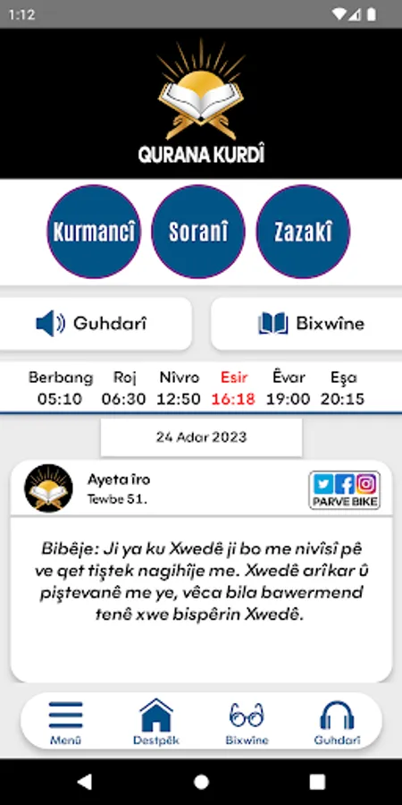 With Qurana Kurdî (Kurdish Quran) application,