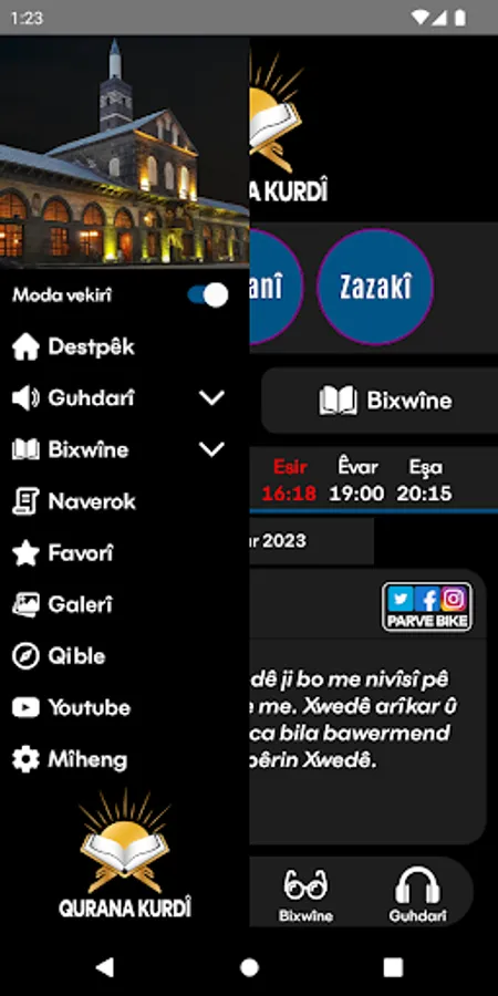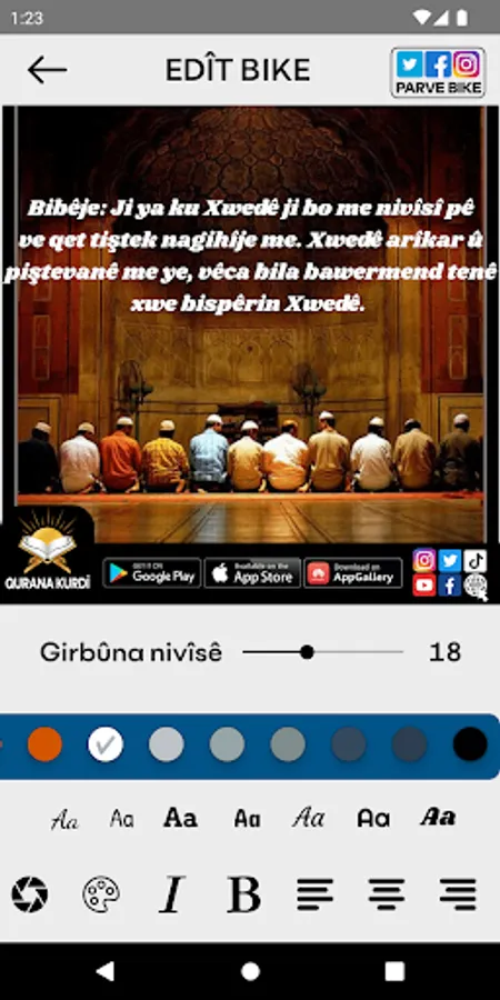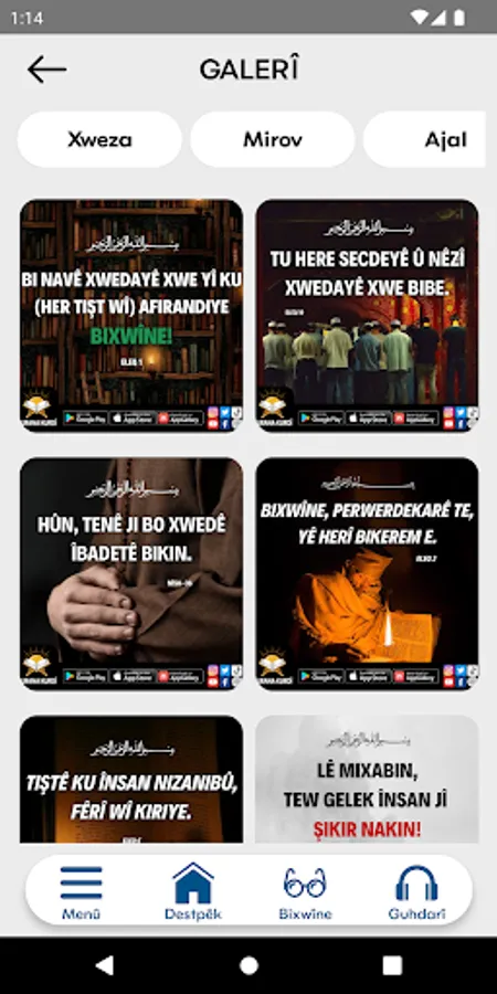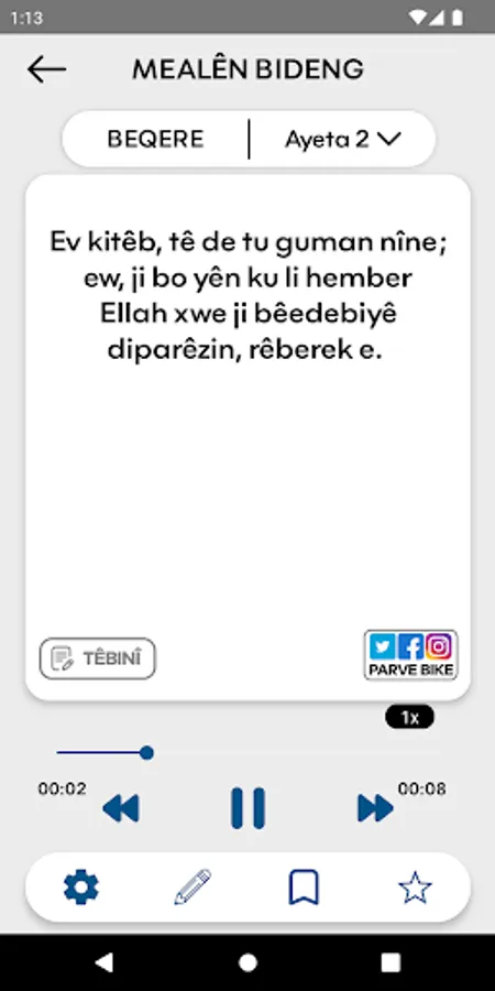 • Ayetên ku hûn bixwînin hûn dikarin bi hêsanî li ser torên civakî (social to media) parve bikin.